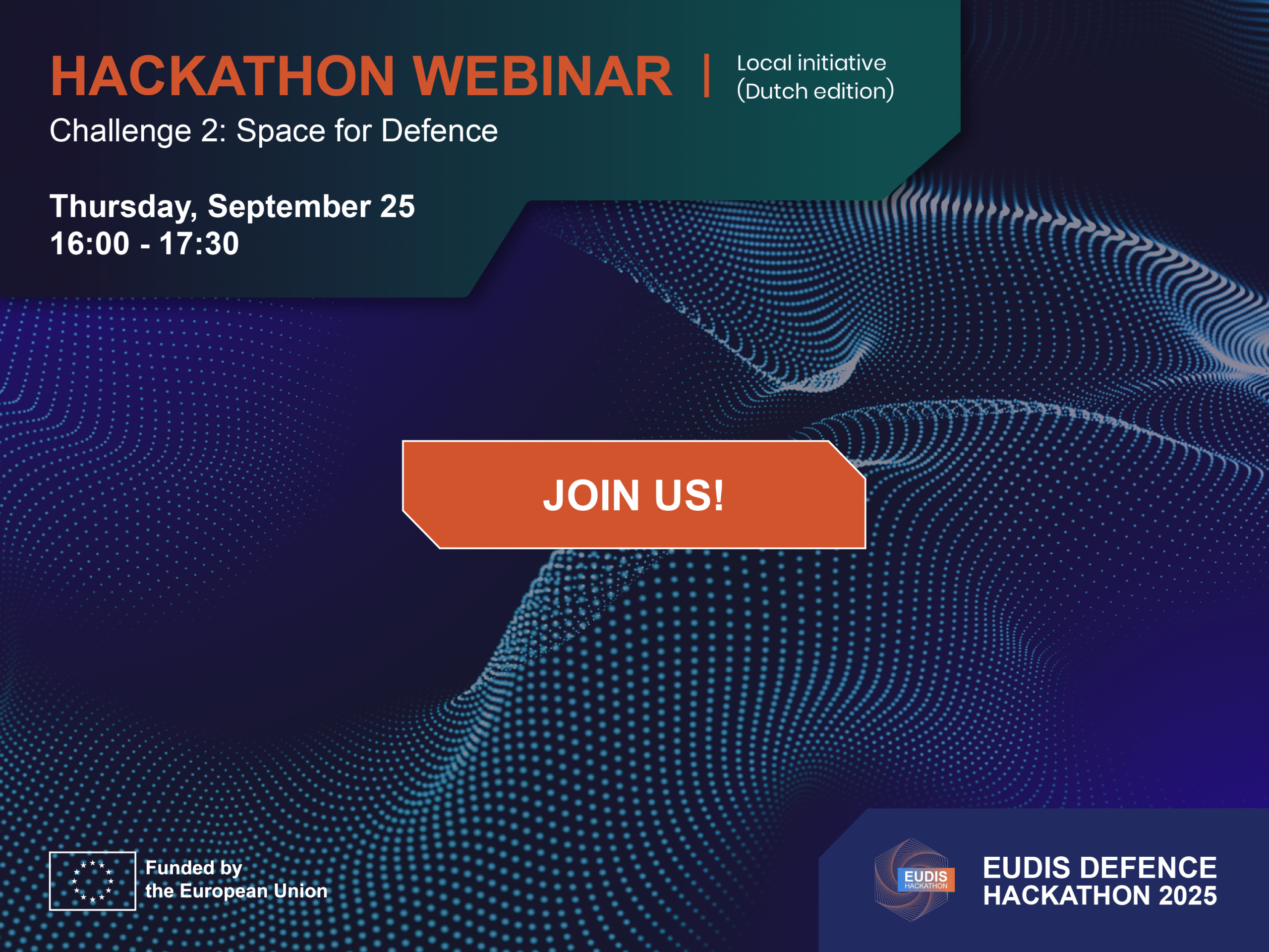 Ahead of the EUDIS Defence Hackathon 2025, this Dutch pre-hackathon webinar focuses on Challenge 2: Space for Defence.