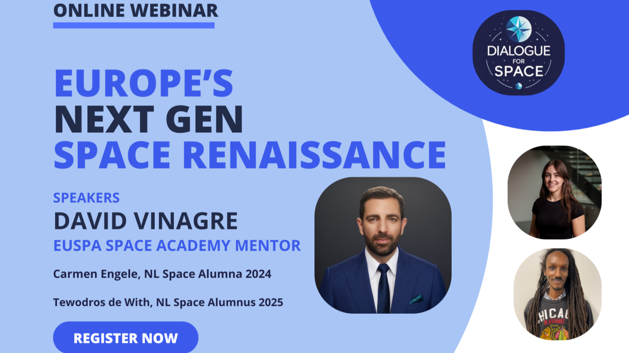 Join us on 11 December for an inspiring evening featuring our special guest, David Vinagre, and the proud badges of the NL Space Summer School Alumni: Carmen Engele & Tewodros de With. Moderated by Iulia ter Veer, this Dialogue for Space becomes a space for ideas to orbit, intersect, and grow. Whether you are exploring opportunities for your future space career or simply curious, this is the place to connect, learn, and spark new ideas.