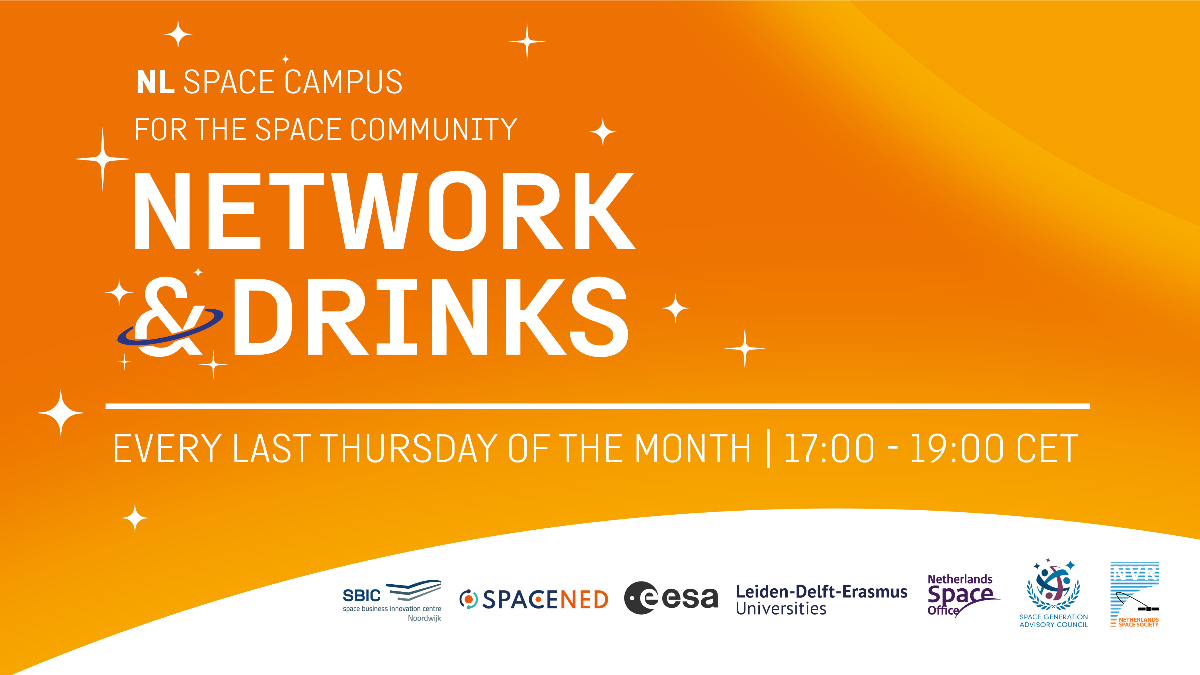 Network & Drinks is organised by NL Space Campus together with SBIC Noordwijk and takes place several times a year. Each edition features short pitches, community and partner updates, and time to connect with others active in and around the space sector.